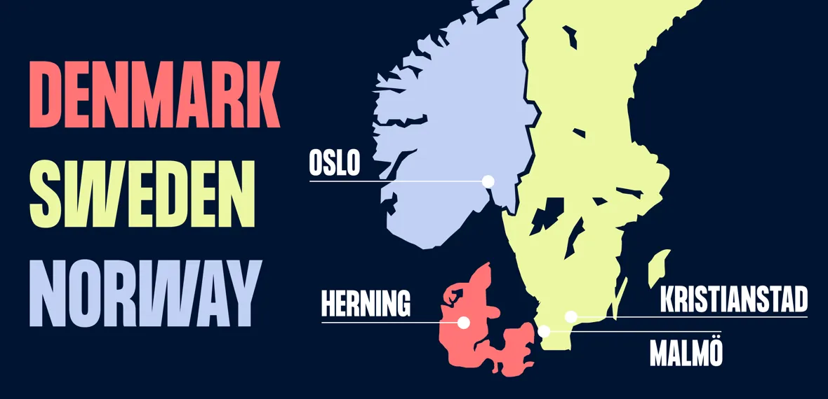In vier Städten: Herning (Dänemark), Oslo (Norwegen), Kristianstad und Malmö (Schweden).