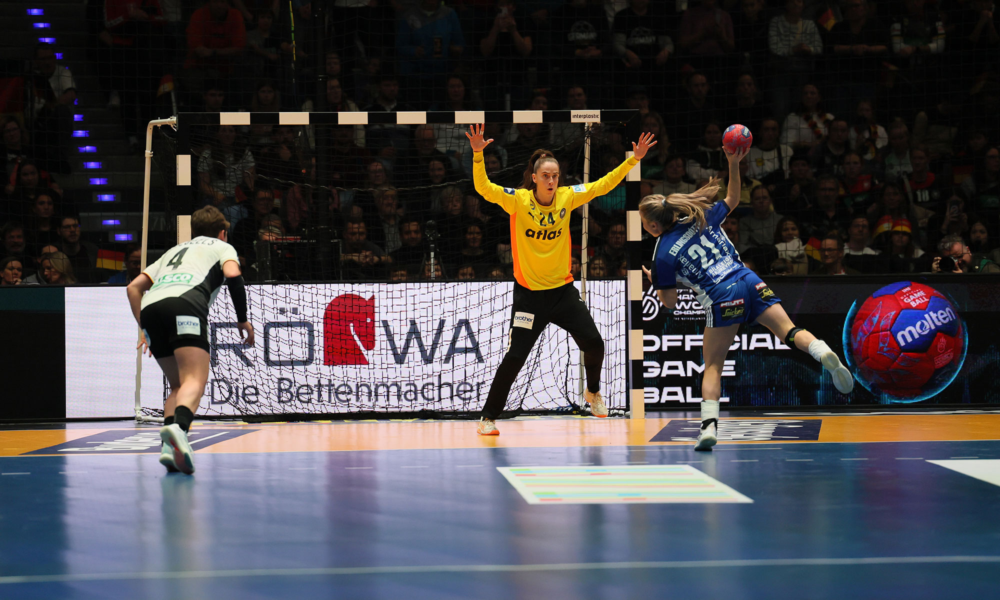 „Ich erlebe die Mannschaft so, dass alle heiß sind und einfach Bock haben, hier zu starten“, sagte Gaugisch vor dem Start – und wurde von seinen Spielerinnen bestätigt. Zwar gestalteten die Isländerinnen, die die letzte WM auf Platz 23 abgeschlossen hatten, die Anfangsphase offen. Doch nach fünf Toren in Serie führte Deutschland schnell mit 10:6 (12.).