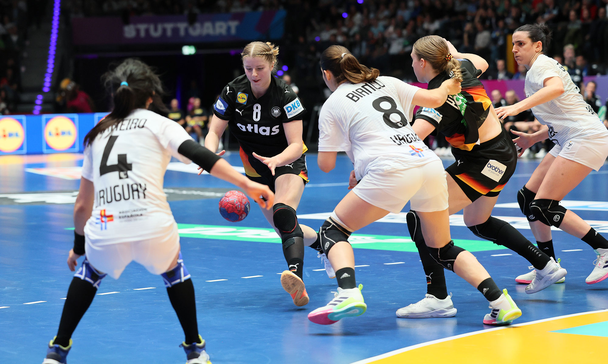 Beim dritten Sieg im dritten Spiel bot das deutsche Team am Sonntagabend eine richtig starke Vorstellung. Aus einer starken Abwehr heraus liefen DHB-Kapitänin Antje Döll und ihre Mitspielerinnen etliche Tempogegenstöße und begeisterten das Stuttgarter Publikum phasenweise mit feinstem Vollgas-Handball. Beste deutsche Werferin vor 5.527 Zuschauern in der erneut ausverkauften Porsche-Arena war Döll mit acht Treffern.